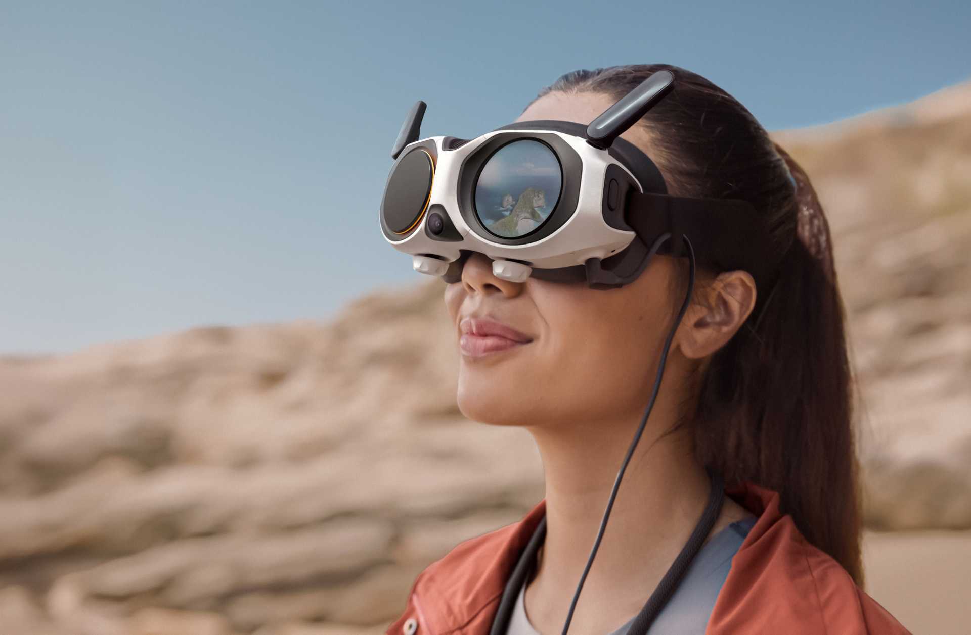 Mit den Antigravity Vision Goggles seht ihr nicht einfach ein starres Kamerabild, sondern tatsächlich die komplette Umgebung. Ihr dreht den Kopf – das Bild folgt. Ihr schaut nach unten – ihr seht die Landschaft unter euch. Nach oben – ihr seht den Himmel.