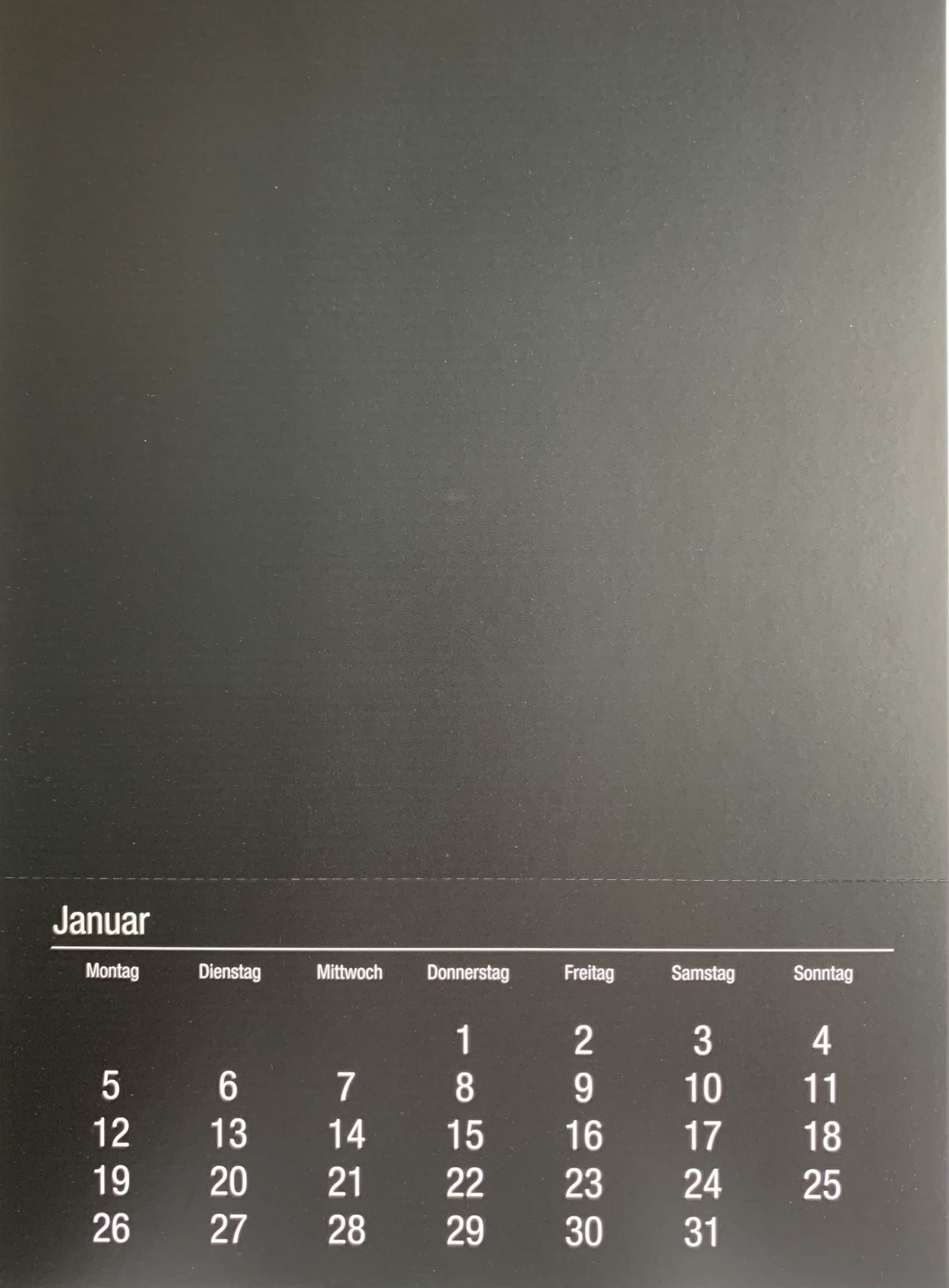 Des Weiteren ist der Kalender mit einer Spiralbindung mit Aufhängung und weißen und schwarzen Seiten ausgestattet.