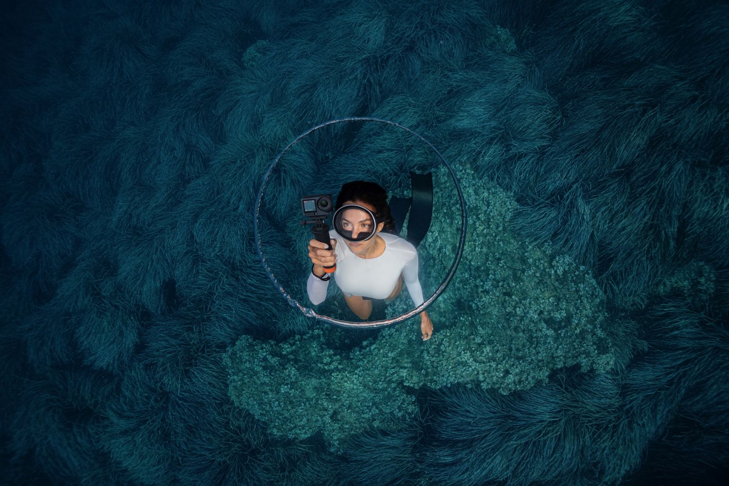 Wasserdicht bis zu 20 Metern [3] ganz ohne Gehäuse. Mit dem integrierten Farbtemperatursensor und dem Wasserdruckmesser [14] liefert die Osmo Action 6 naturgetreue Unterwasserfarben und zeichnet deine Tauchdaten auf.