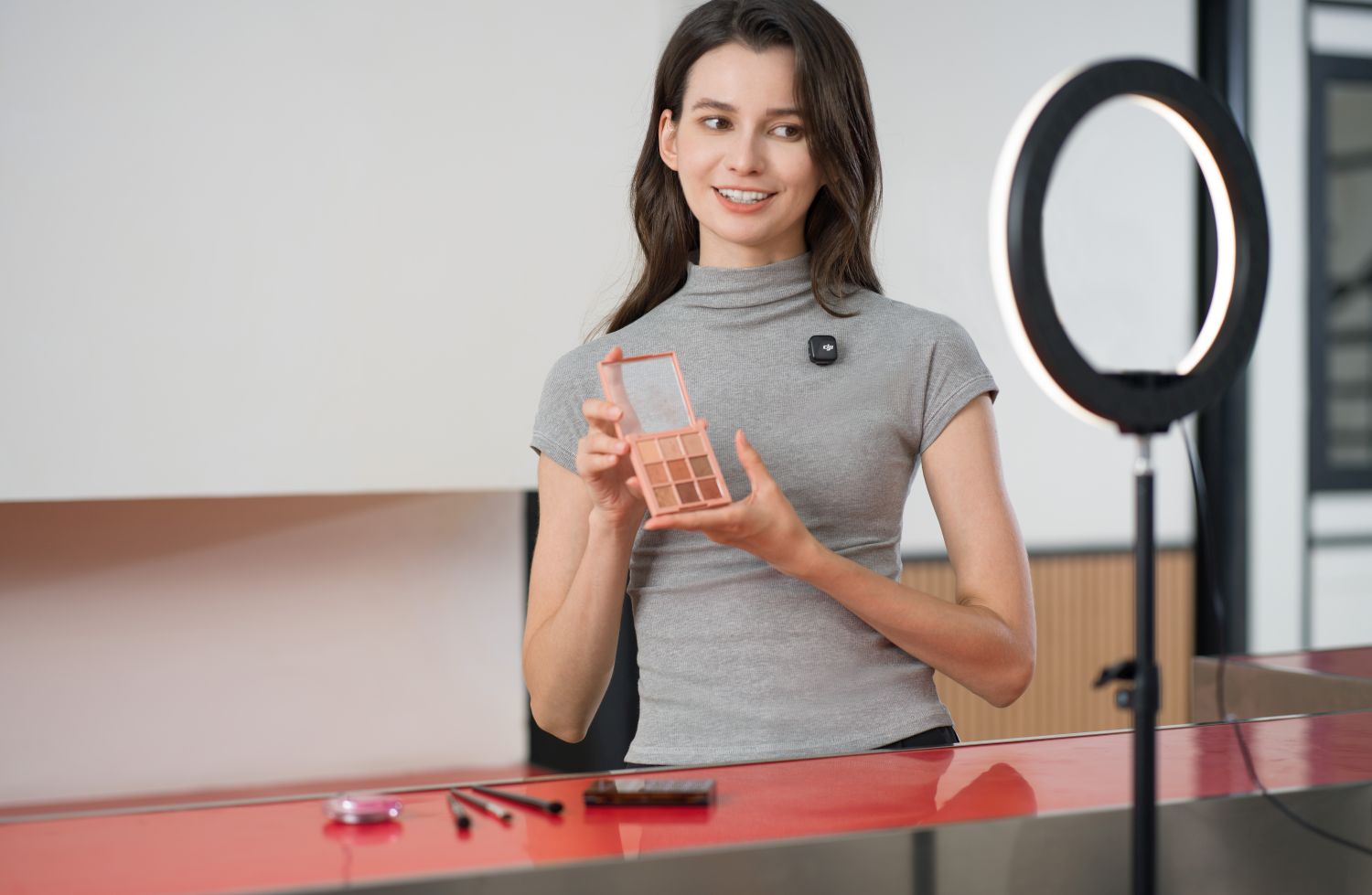 Der DJI Mic Mini Sender ist klein und ultraleicht, mit einem Gewicht von nur 10 g, [5] was ihn angenehm zu tragen und unauffällig macht. Dank der verschiedenen Trageoptionen wie der Magnet- oder Clipbefestigung beschwert es deinen Kragen nicht und kippt auch bei einem dünnen T-Shirt nicht nach außen, was für ein ästhetisches Erscheinungsbild vor der Kamera sorgt.