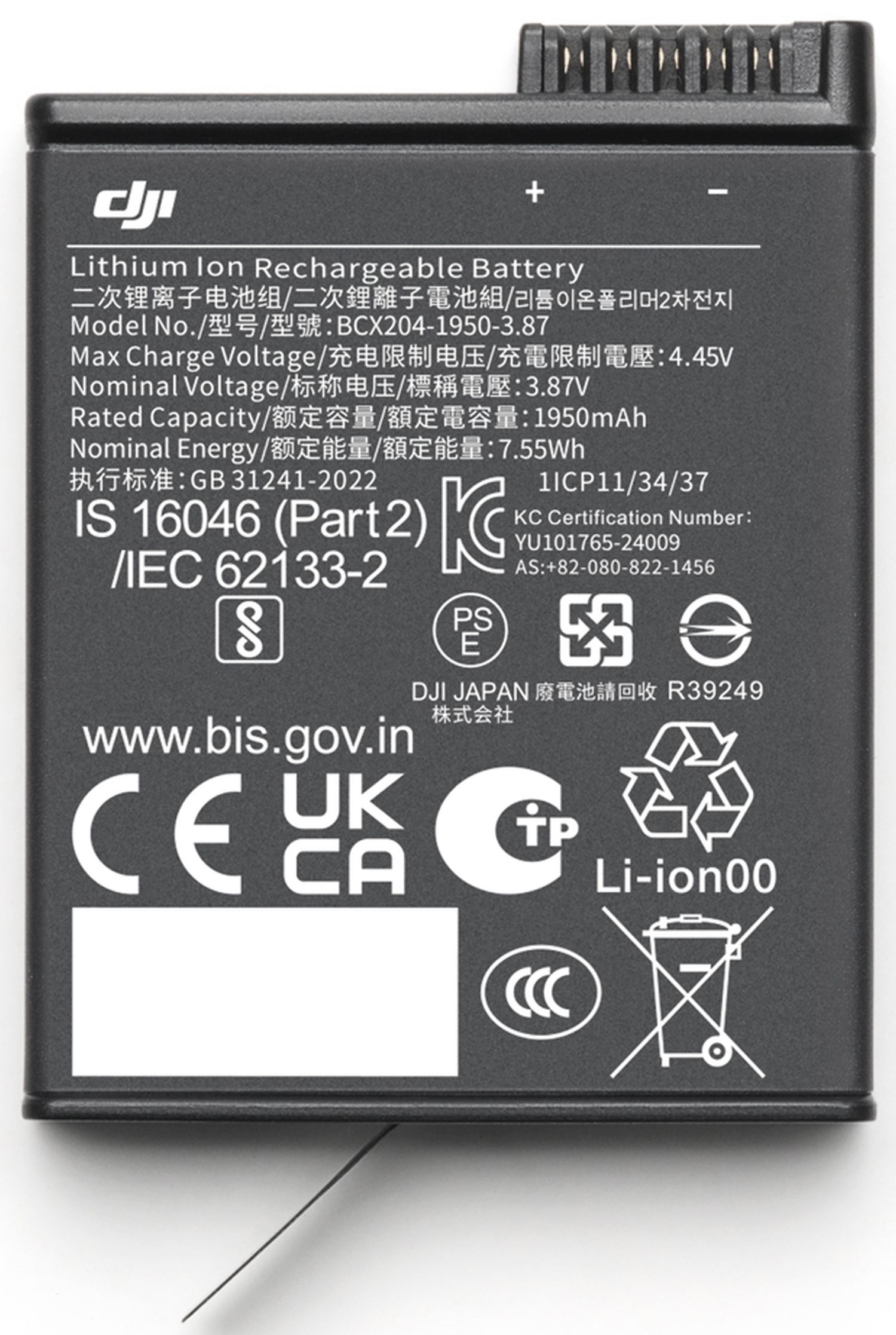 Der DJI Osmo Action Extremer Akku Plus (1950 mAh) ist ein Ersatz-Akku für die DJI Osmo Action 5 Pro, Osmo Action 4 und 3. Mit einer Akkulaufzeit von bis zu vier Stunden bietet er 50 % mehr Laufzeit als die Action 4, sodass keine besonderen Momente mehr entgehen. Auch bei extremen Temperaturen von bis zu -20°C bleibt der Akku zuverlässig und ermöglicht bis zu 3,6 Stunden ununterbrochene Aufnahme in frostiger Umgebung.