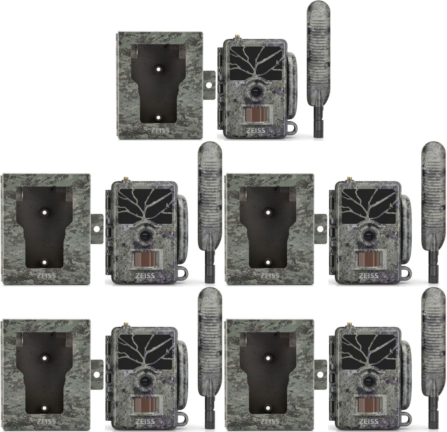 Die ZEISS Secacam 1 kombiniert bewährte ZEISS Bildqualität mit modernster Konnektivität und höchster Benutzerfreundlichkeit. Mit 60 Black-LEDs und lichtempfindlichem Sensor entstehen gestochen scharfe Aufnahmen bei Tag und Nacht – dank IR-Boost-Technologie auch in völliger Dunkelheit. Jetzt im 5er Pack inkl. 5x Metallgehäuse erhältlich. Produktbilder zeigen optionales Zubehör und Anwendungsbeispiele.