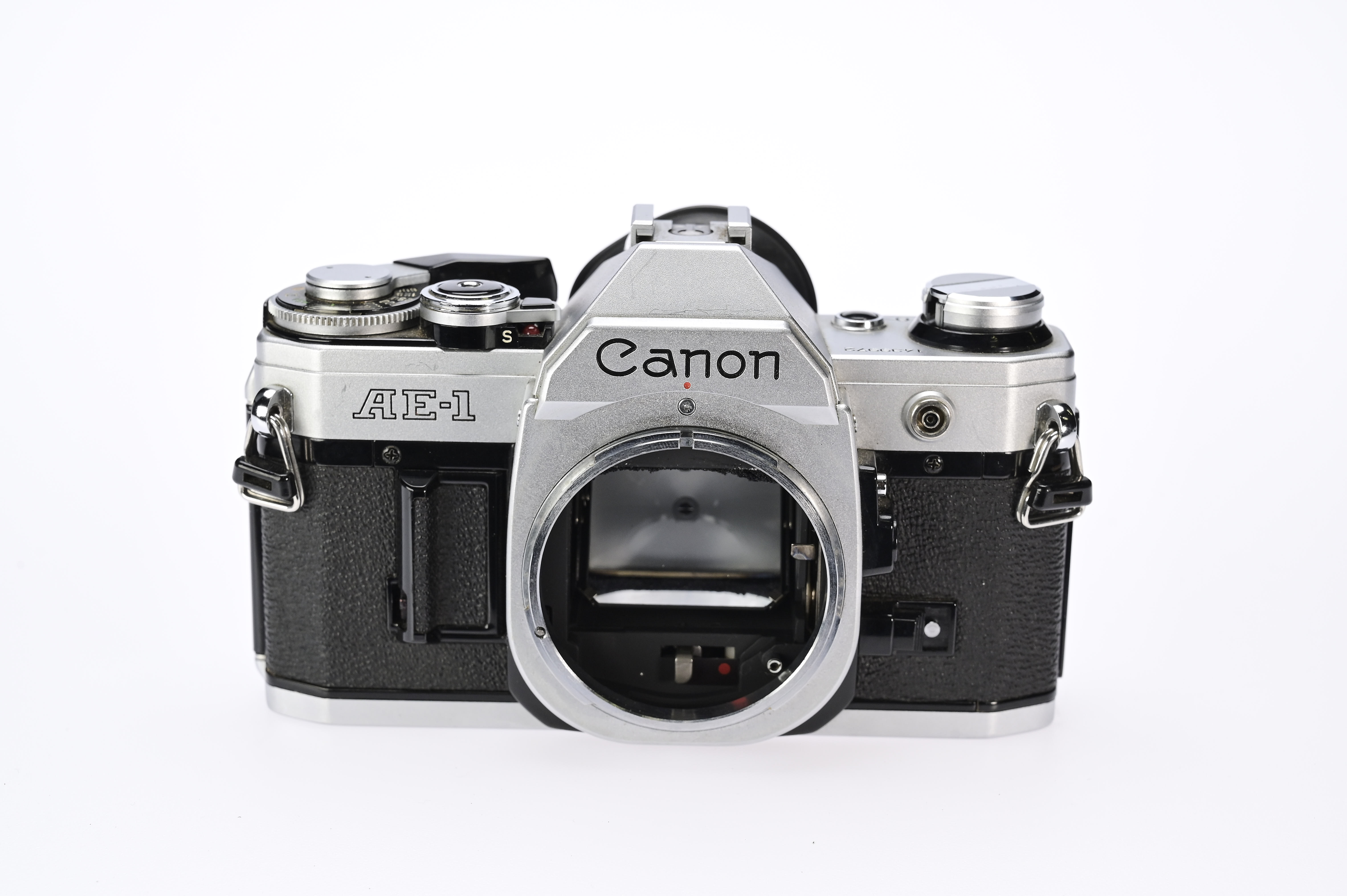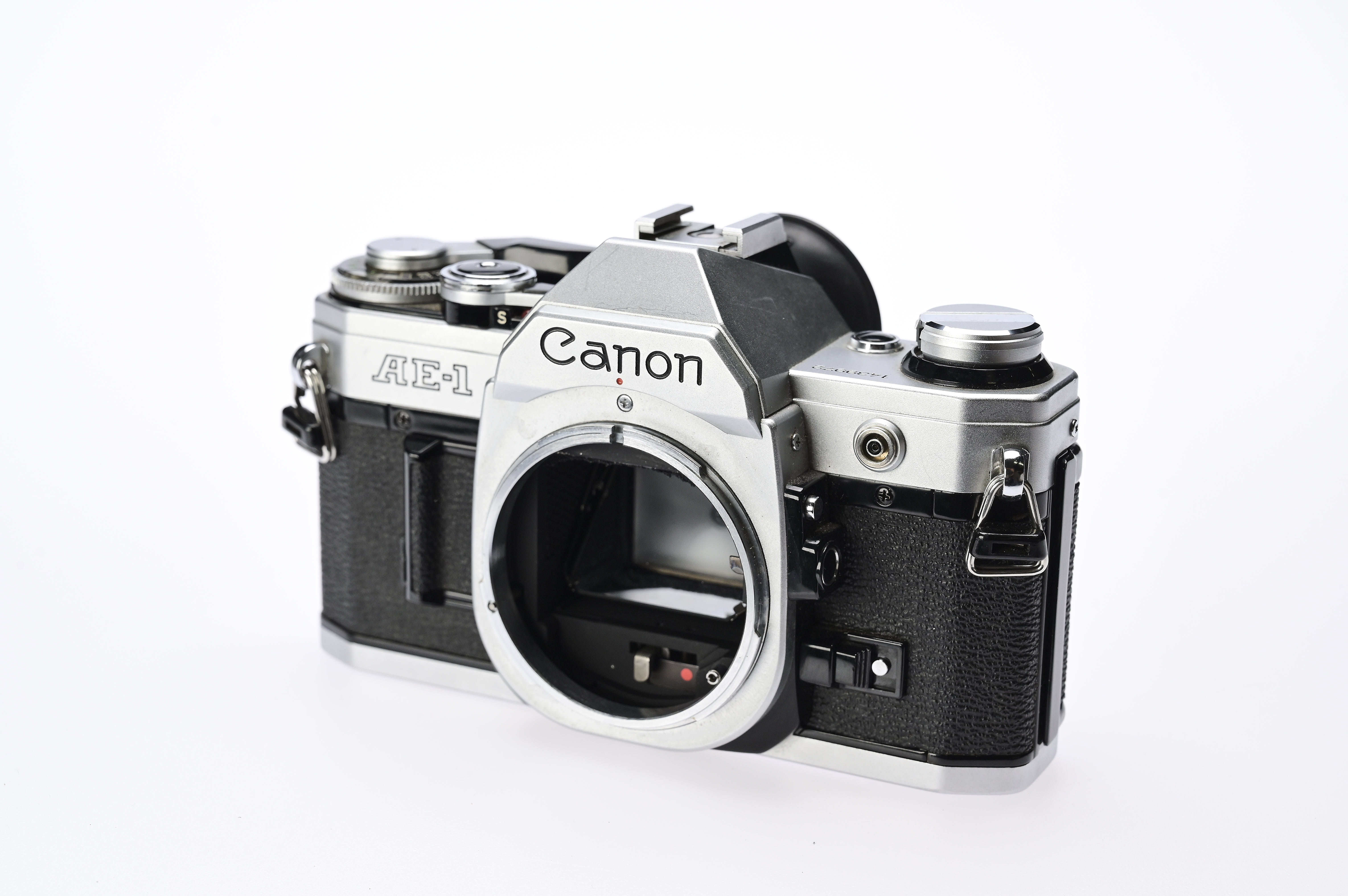 Die Canon AE-1 wurde 1976 eingeführt und gehört zu den wegweisenden Kameras der Canon A-Serie. Sie verfügt über ein robustes, kompaktes Gehäuse aus Metall und bietet sowohl manuelle als auch programmierte Belichtungssteuerung, wodurch Anwender flexibel zwischen kreativer Kontrolle und einfacher Handhabung wählen können. Der zentrale Belichtungsmesssensor arbeitet mit CdS-Zelle und ermöglicht präzise Messungen für unterschiedlichste Lichtbedingungen.