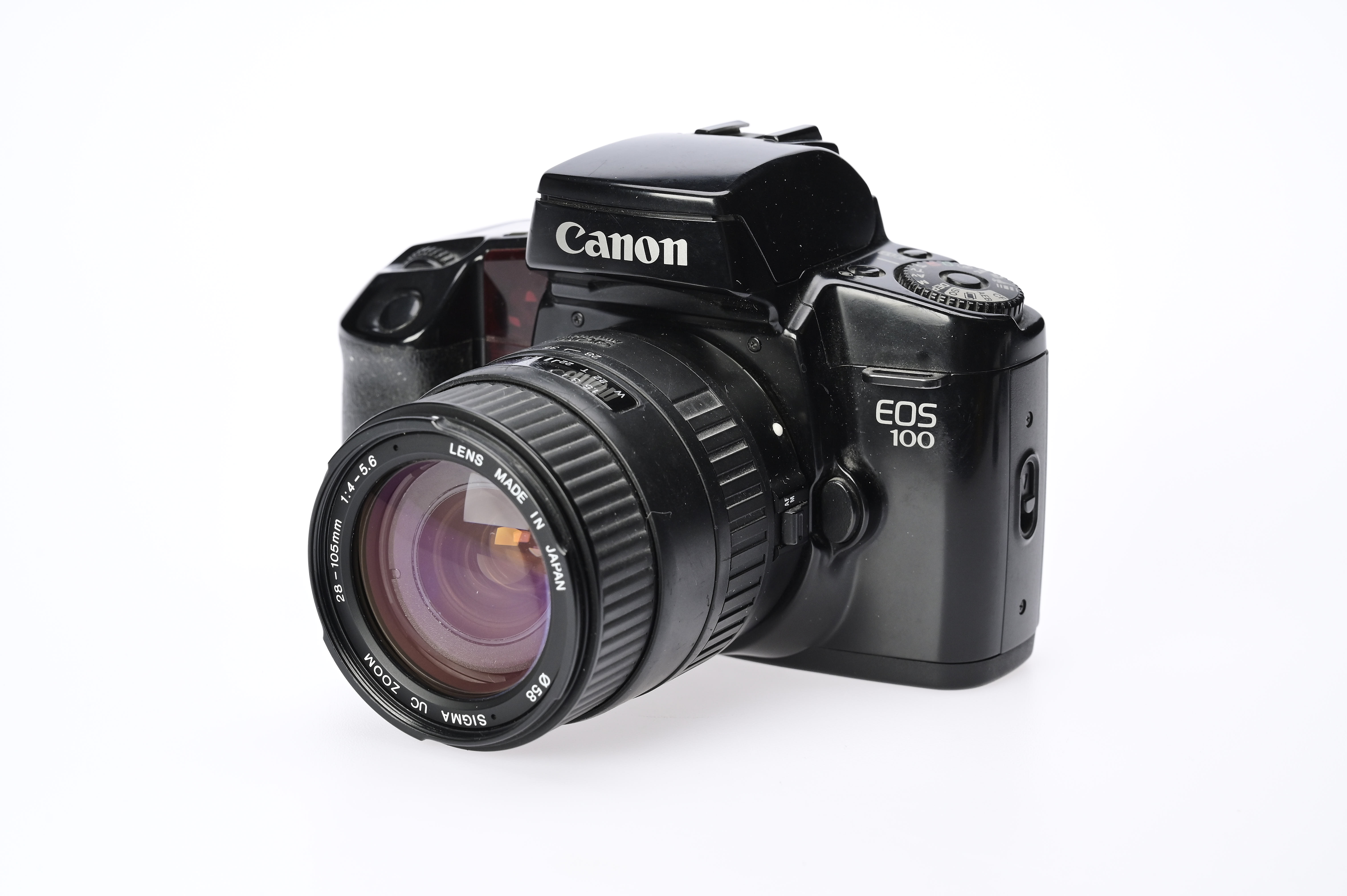 Die Canon EOS 100 ist eine analoge Kleinbild-Spiegelreflexkamera, die sich durch solide Funktionalität und benutzerfreundliche Bedienung auszeichnet. Sie bietet automatische und manuelle Belichtungsmodi, was sowohl Einsteigern als auch erfahrenen Filmfotografen kreative Kontrolle erlaubt. Das robuste Gehäuse hält häufigem Einsatz stand, und die klassische SLR-Handhabung sorgt für direkten Bezug zu Motiv und Bildgestaltung.
