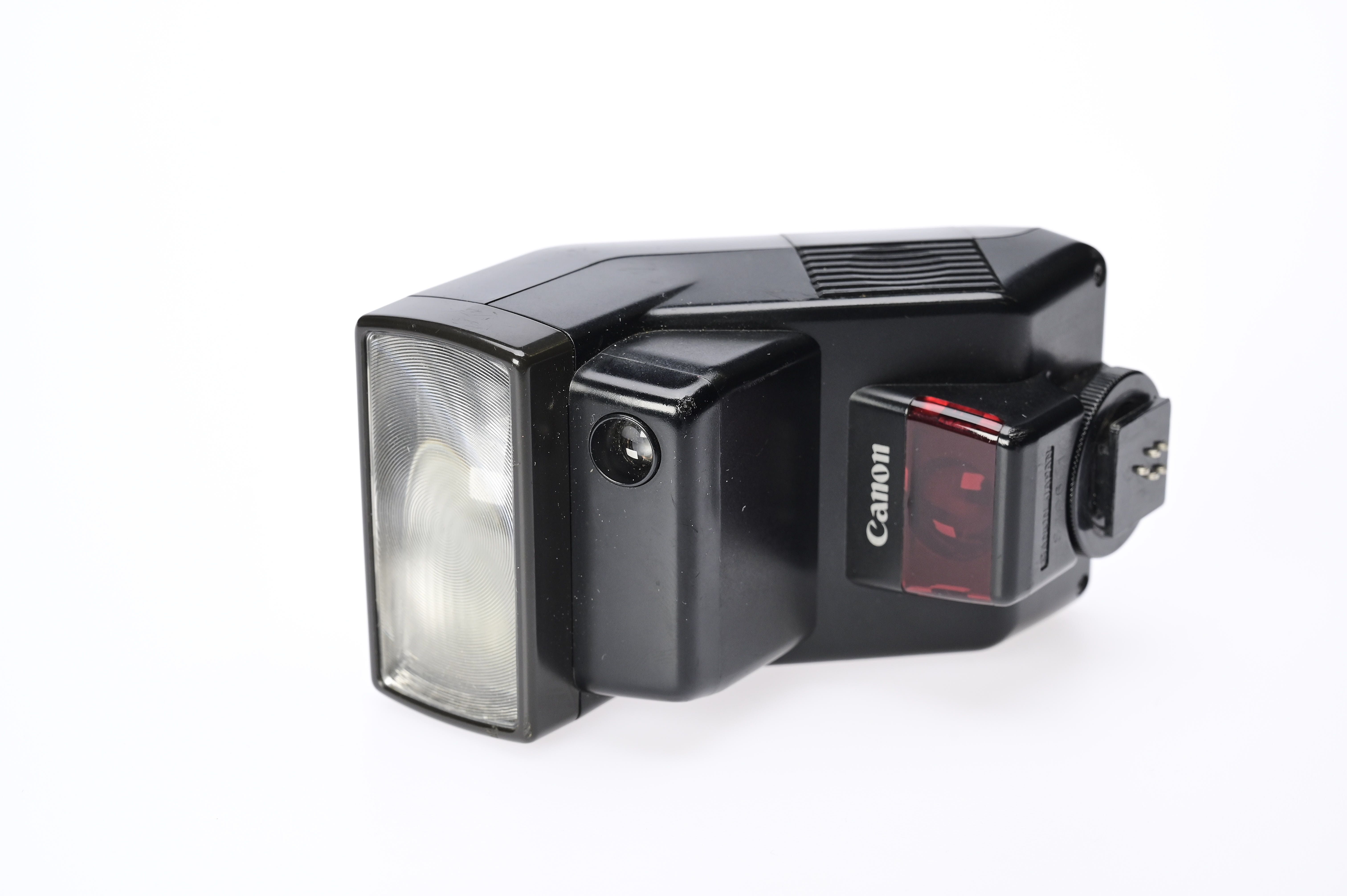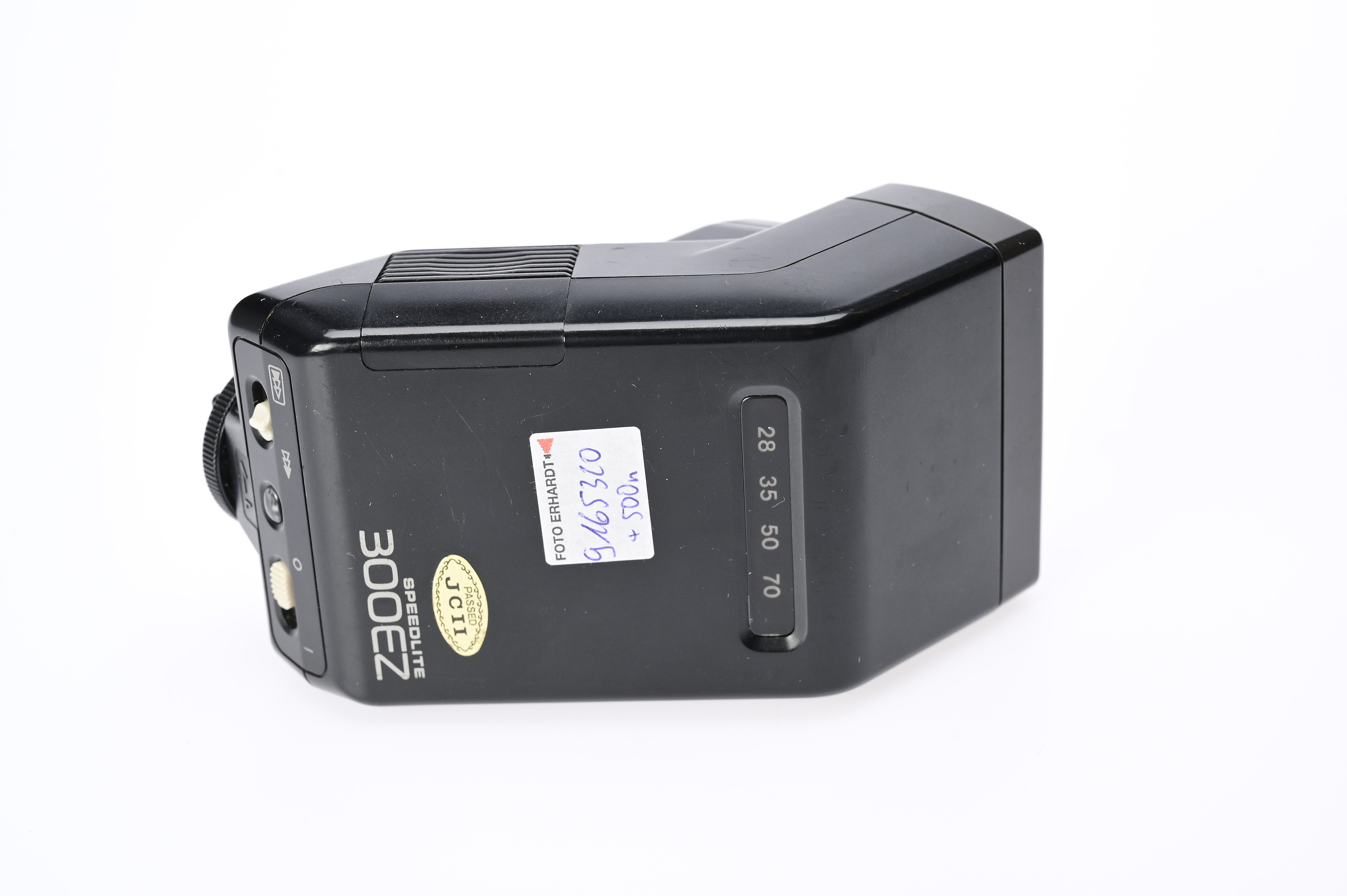Der Canon 300EZ ist ein leistungsfähiger, integrierter Blitz, der mit der Kamera harmoniert und Blitzlichtsteuerung für Füll-, Aufhell- oder kreative Lichtsetzung ermöglicht. Er unterstützt Automatik-Blitzfunktionen und manuelle Leistungsanpassung, was die Arbeit in Innenräumen, bei Events oder schwierigen Lichtverhältnissen erleichtert. Der Blitzkopf lässt sich neigen, um indirektes Licht über Decke oder Wände zu nutzen und weichere Schatten zu erzeugen.