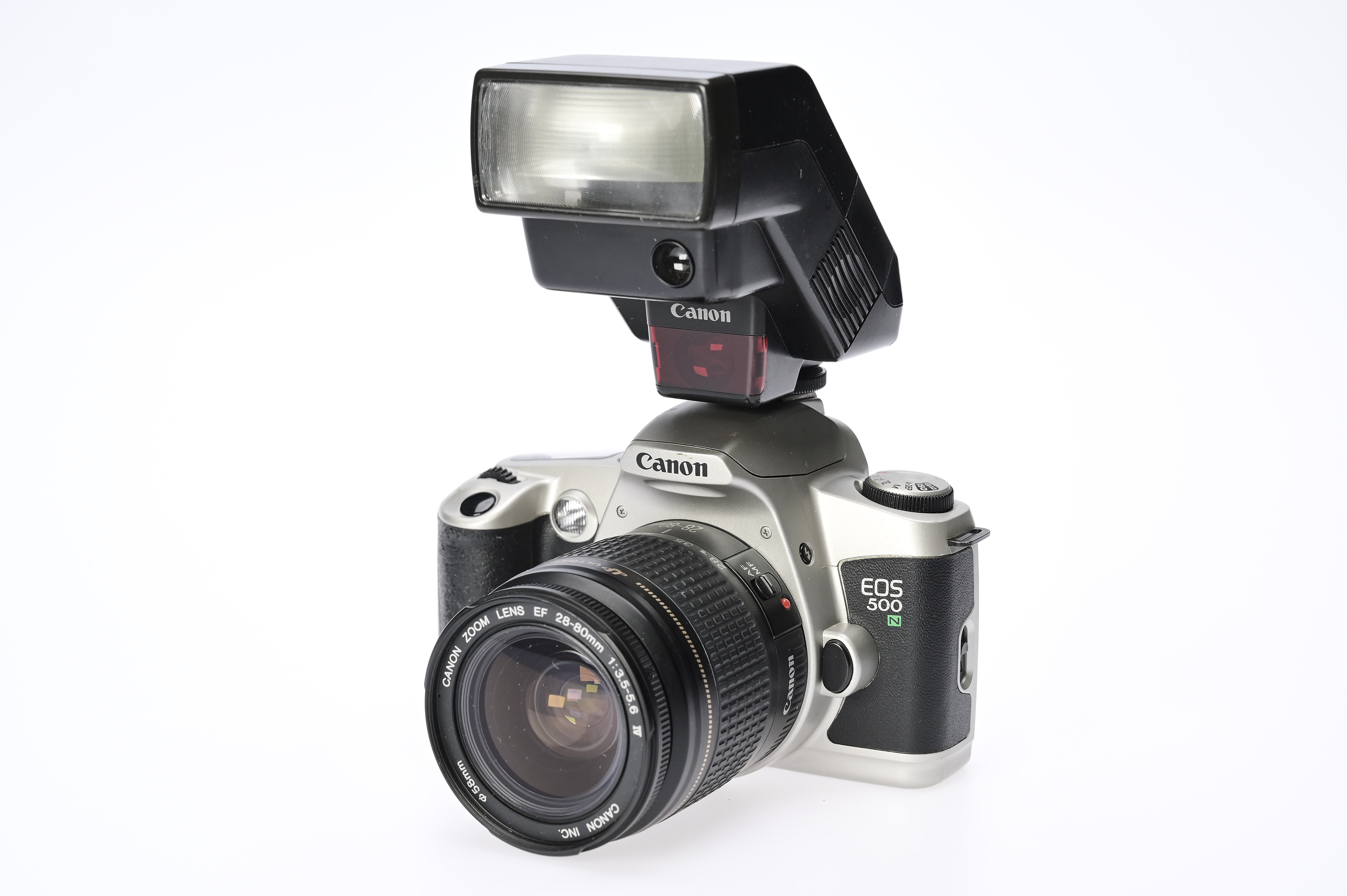 Die Canon EOS 500 N ist eine klassische 35 mm-Spiegelreflexkamera, die sich durch einfache Bedienung, zuverlässige Belichtungsmessung und solide Automatik-Funktionen auszeichnet. Sie bietet alles, was Einsteiger und ambitionierte Hobbyfotografen im analogen Bereich brauchen: Programmautomatik, Zeit- und Blendenpriorität sowie manuelle Steueroptionen. Die Kamera liegt gut in der Hand und ermöglicht fokussiertes Arbeiten auf die Bildgestaltung statt Technik.