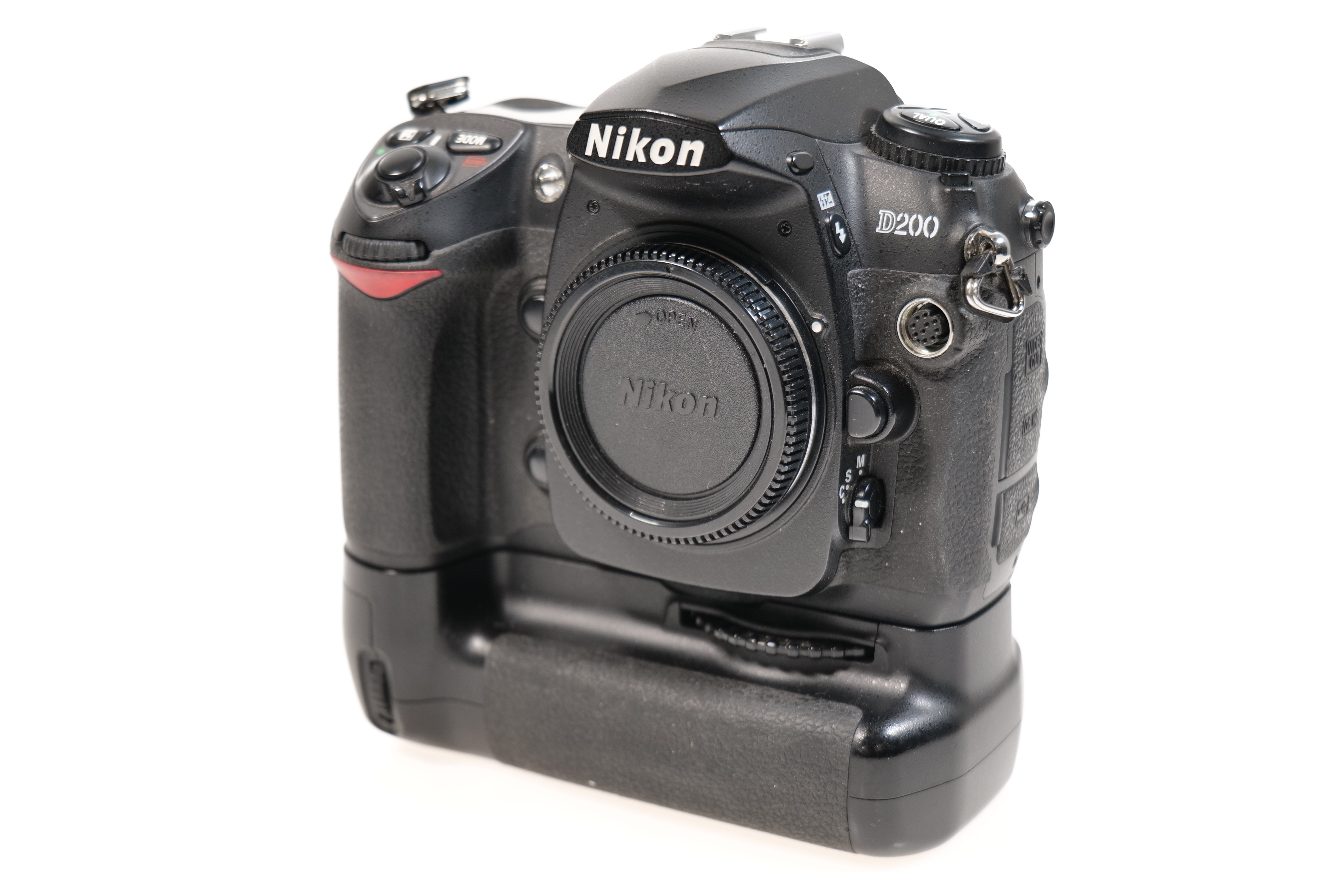 Die Nikon D200 ist eine professionelle DSLR für ambitionierte Fotografen, die Wert auf robuste Bauweise und zuverlässige Leistung legen. Dieses Exemplar wird mit dem MB-D200 Batteriegriff angeboten und befindet sich im Zustand C, mit deutlichen Gebrauchsspuren, ist aber voll funktionsfähig.