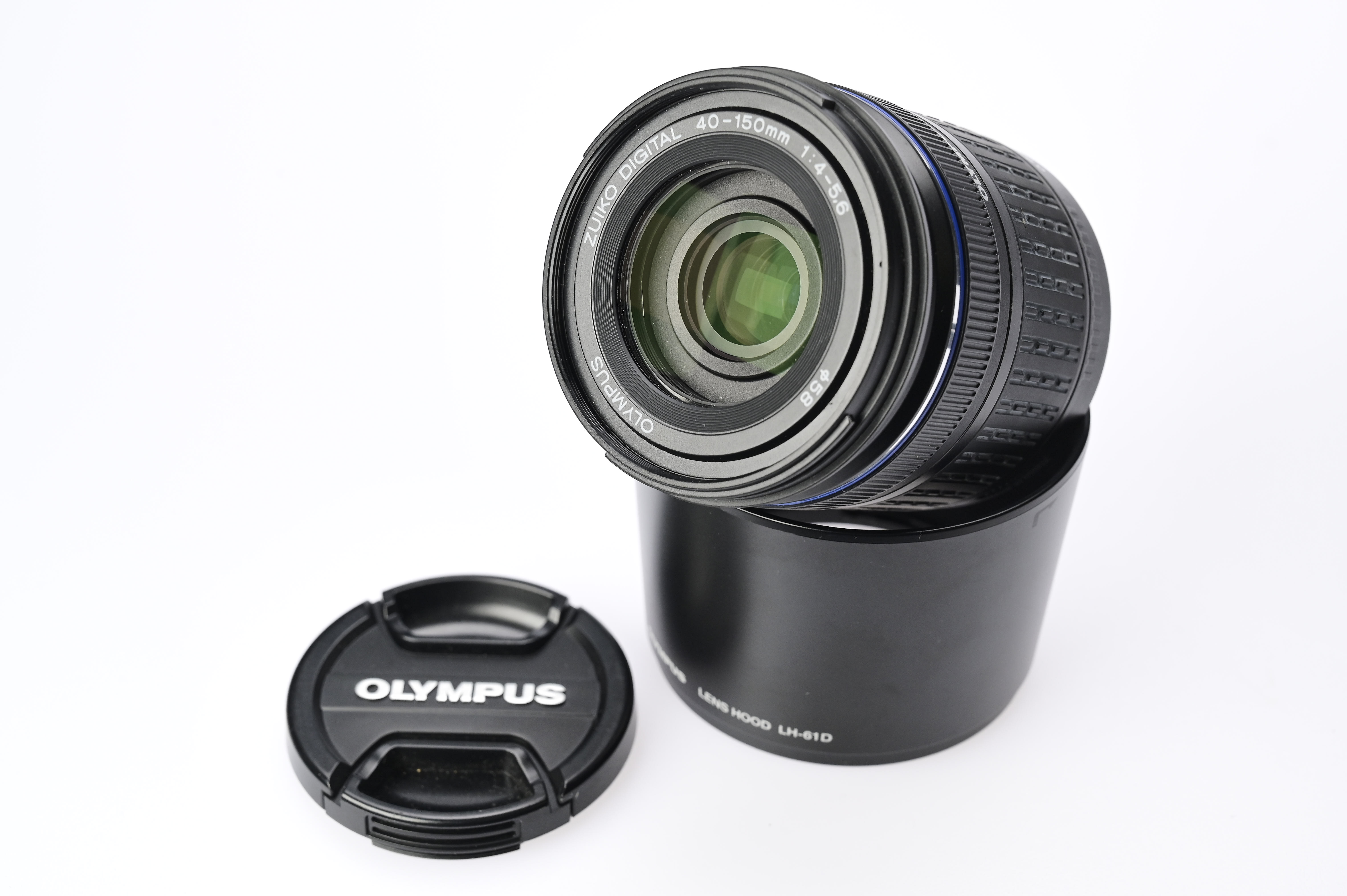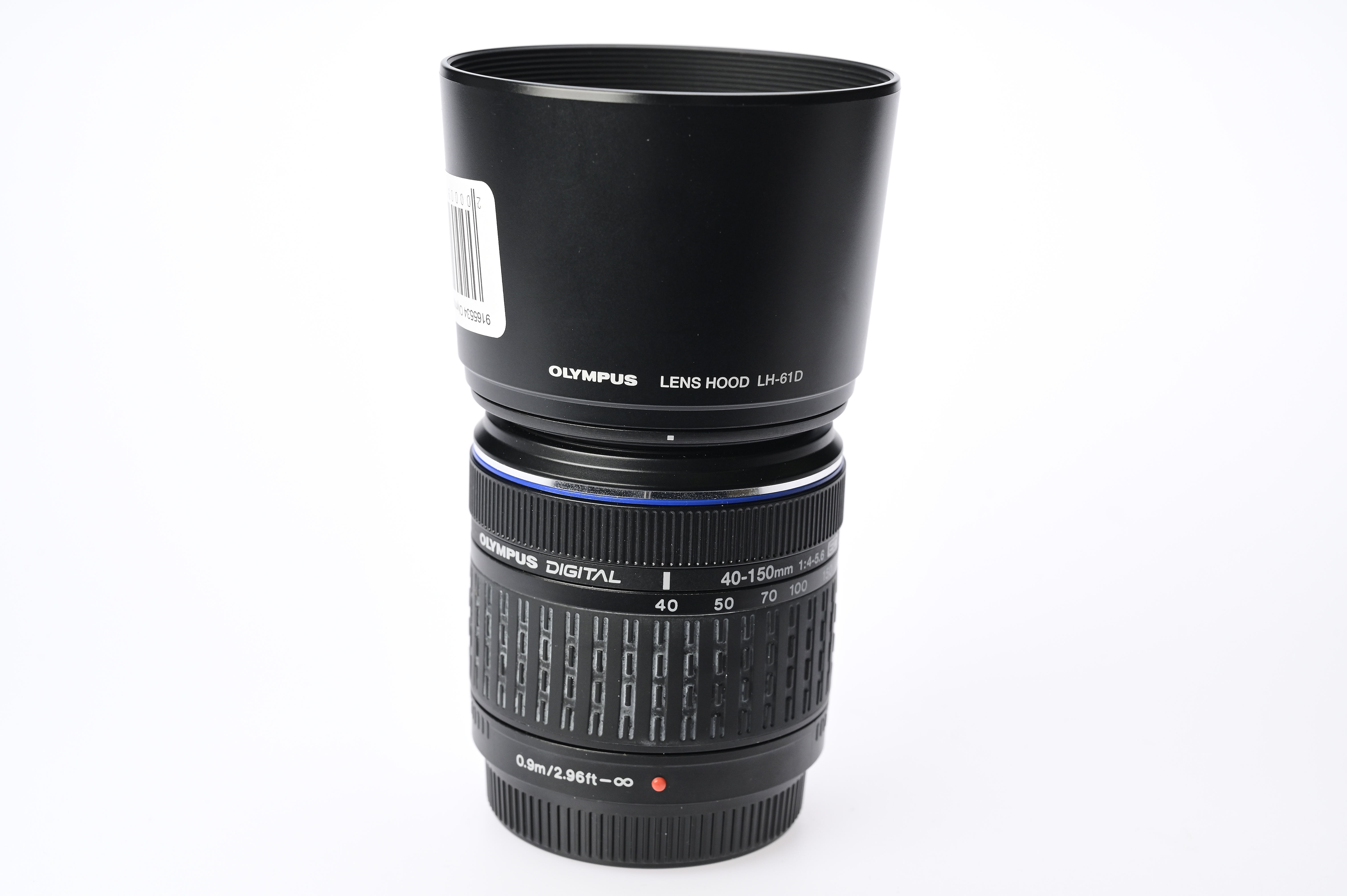 Das Olympus Zuiko Digital 40–150 mm F4–5,6 ist ein kompaktes Telezoomobjektiv für das Four Thirds System (FT). Dieses Exemplar befindet sich im Zustand C, mit deutlichen Gebrauchsspuren, ist jedoch optisch und mechanisch funktionsfähig.