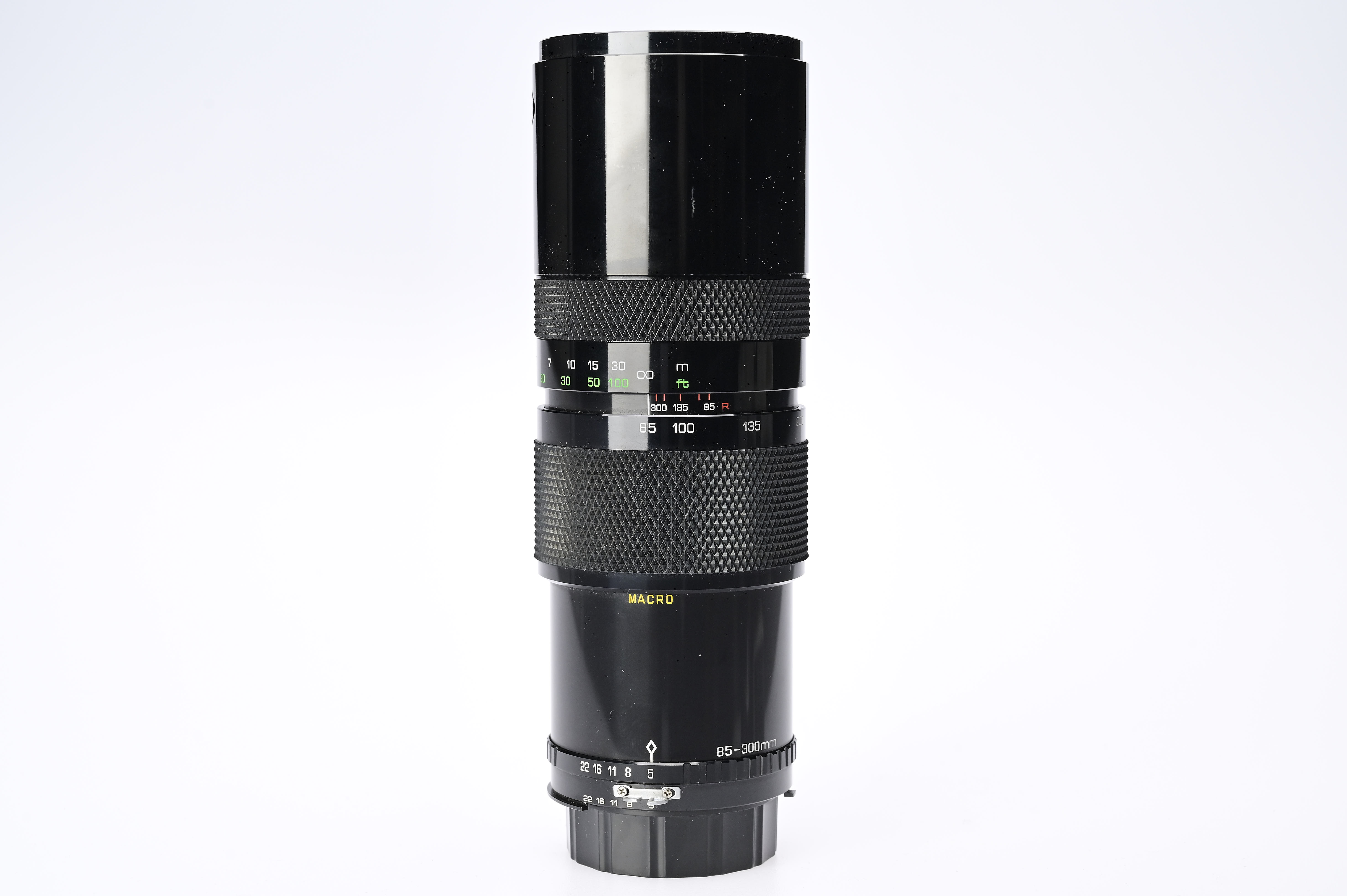 Das Soligor 85–300 mm f/5 ist ein Telezoomobjektiv mit Nikon-F-Mount aus der analogen Zeit. Der große Brennweitenbereich deckt vom mittleren Tele bis zum starken Tele ab und eignet sich für Situationen, in denen Motive aus größerer Distanz erfasst werden sollen – etwa bei Sport- oder Tierfotografie, Landschaftsdetails oder bei Portraits mit engerer Perspektive. Durch die moderate, durchgängige Lichtstärke von f/5 über den gesamten Zoombereich bleibt der Fokus auf kompakter Bauform und praktikabler Handhabung.