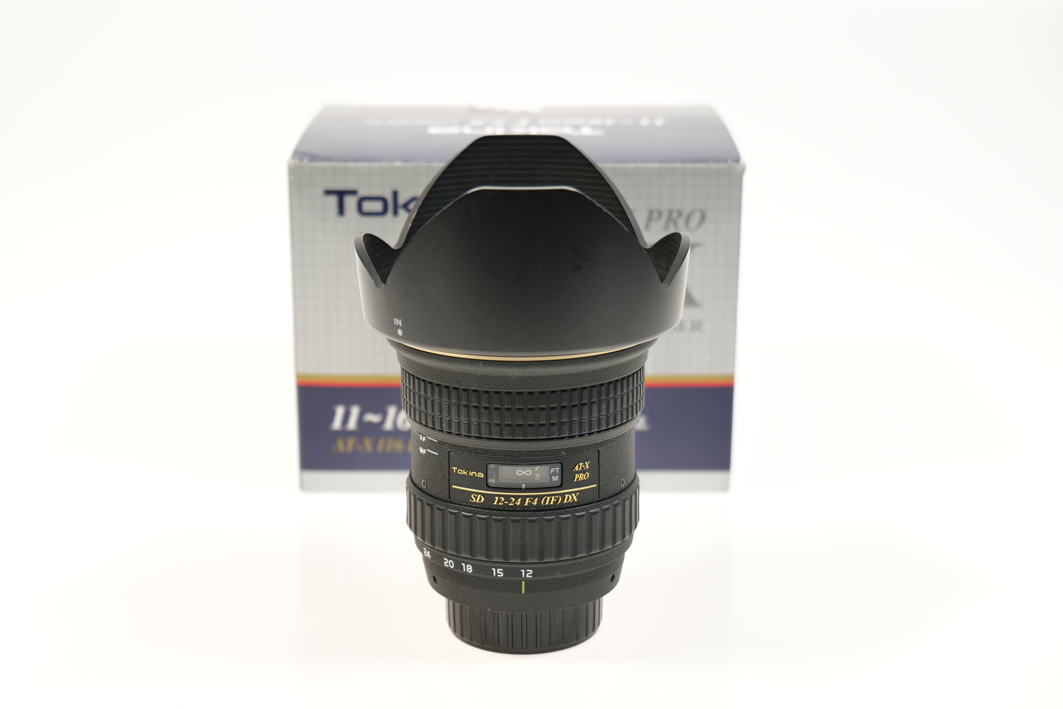 Das Tokina AT-X Pro 14–24 mm F4,0 AF ist ein professionelles Ultraweitwinkel-Zoomobjektiv für Nikon FX- und DX-Kameras. Dieses Exemplar befindet sich im Zustand C, mit deutlichen Gebrauchsspuren, optisch und mechanisch funktionstüchtig.
