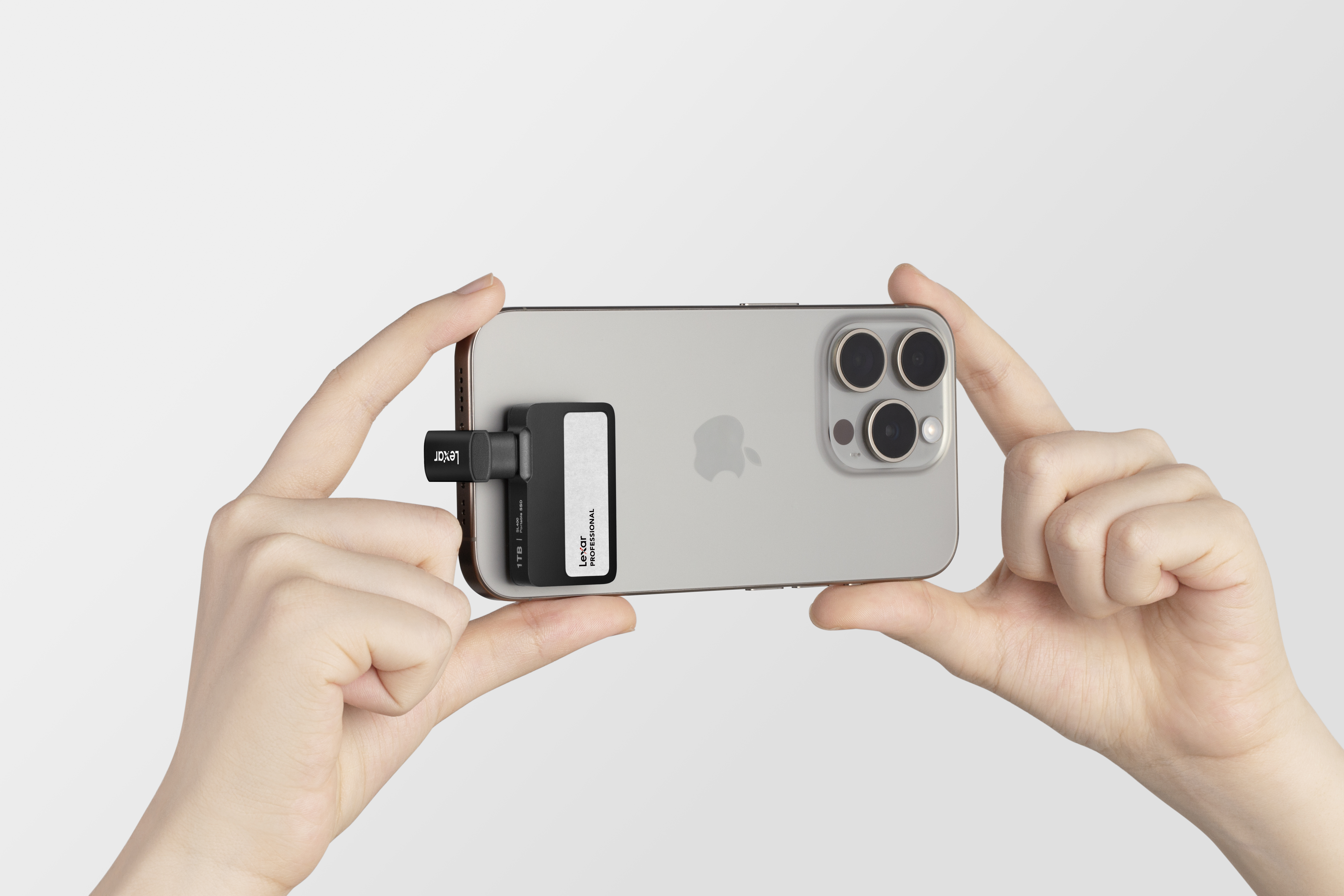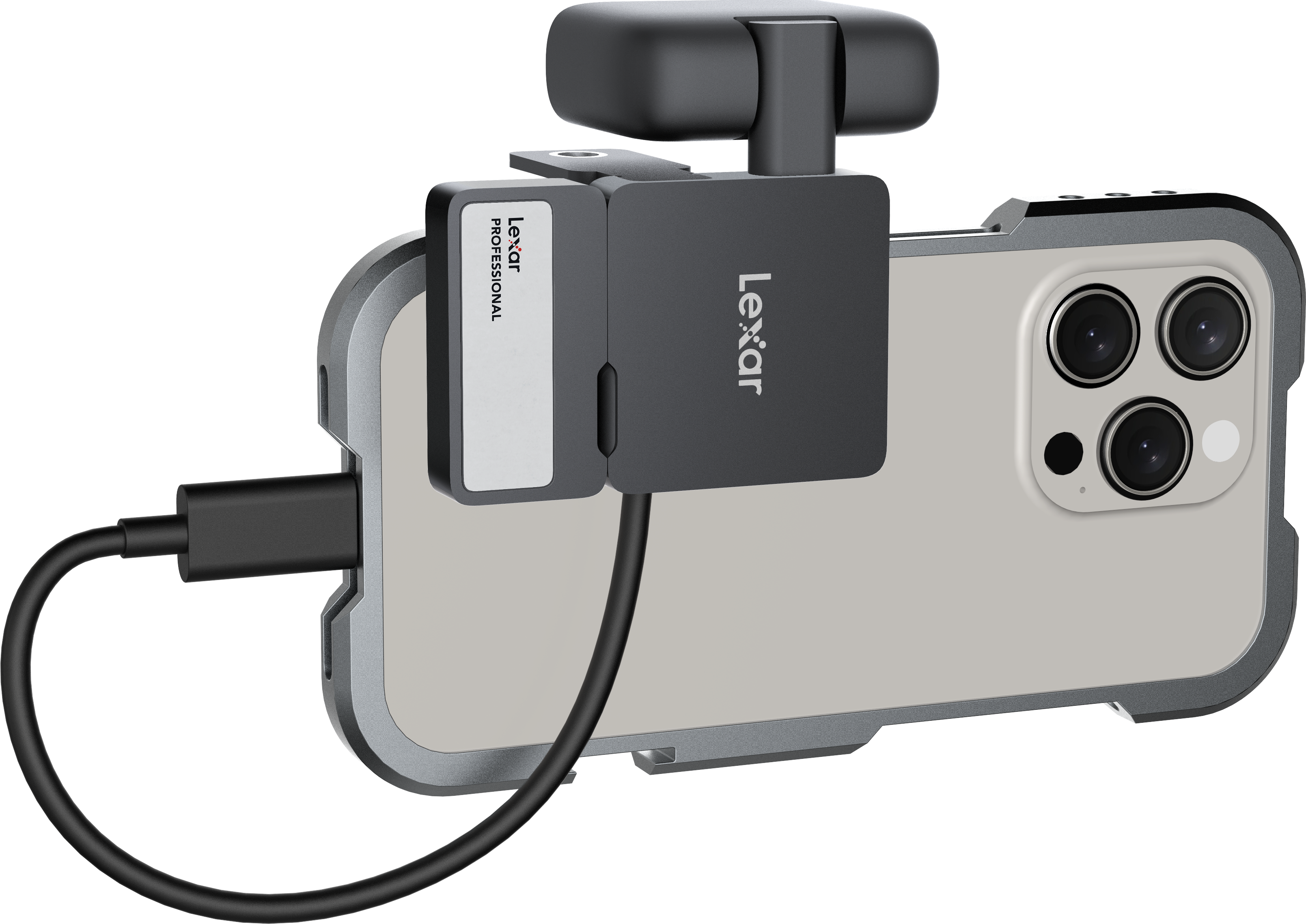Die Lexar Professional Go Portable SSD bietet Ihnen bis zu 2 TB zusätzlichen Speicherplatz, sodass Sie sich keine Gedanken mehr über begrenzten Speicher auf Ihrem Telefon oder Computer machen müssen. Dank der USB 3.2 Gen 2-Schnittstelle ermöglicht sie schnelle Datenübertragungen mit Lesegeschwindigkeiten von bis zu 1050 MB/s und Schreibgeschwindigkeiten von bis zu 1000 MB/s – für eine zuverlässige und effiziente Datenverarbeitung, die all Ihren Anforderungen gerecht wird. Produktbilder zeigen optionales Zubehör und Anwendungsbeispiele.