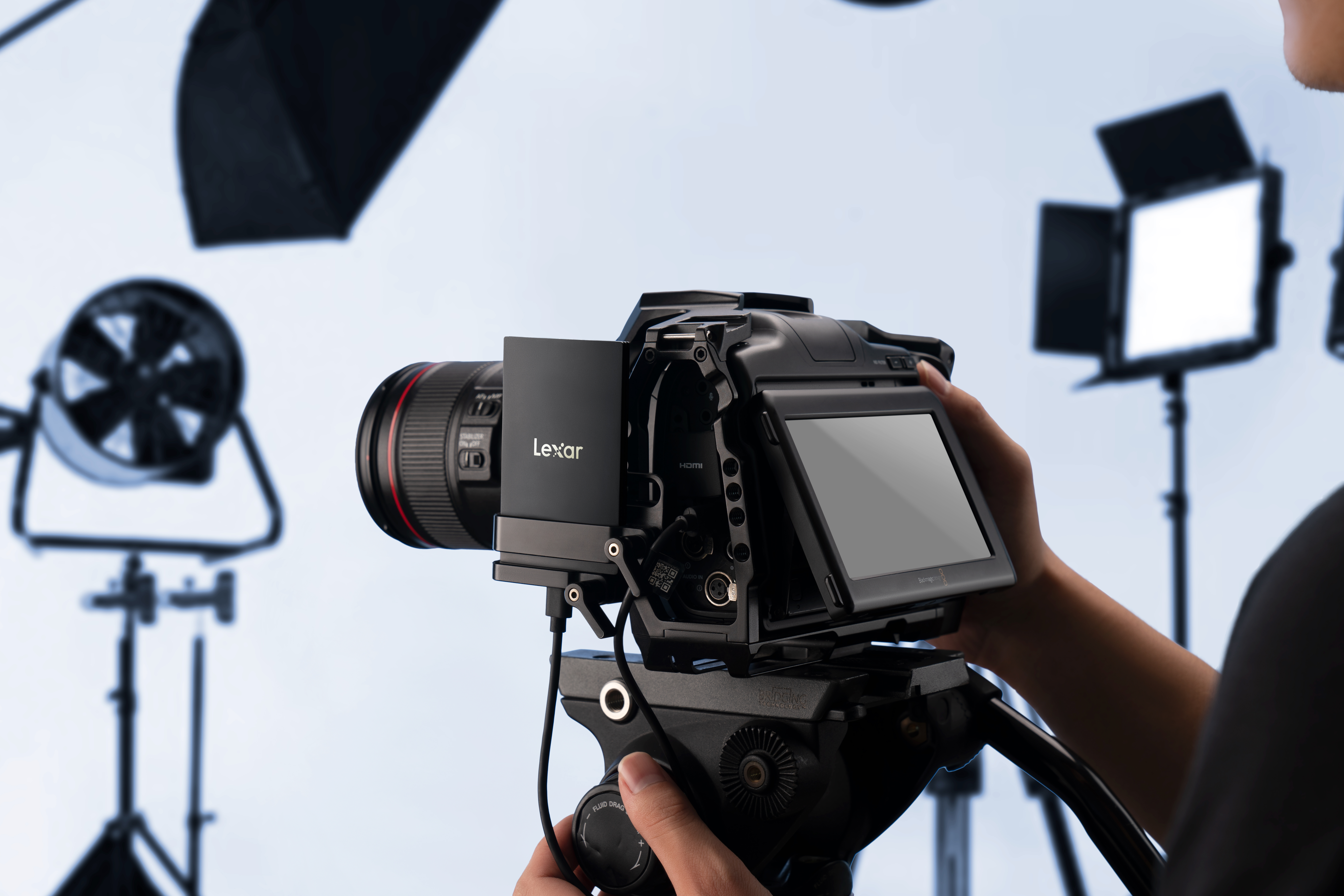 Mit ihrer superschlanken, soliden Aluminium-Unibody-Konstruktion, die Handflächengroß ist, bietet die tragbare Lexar SL500 SSD außergewöhnliche Lesegeschwindigkeiten von bis zu 2000 MB/s und Schreibgeschwindigkeiten von bis zu 1800 MB/s und maximiert so die Effizienz. Produktbilder zeigen optionales Zubehör und Anwendungsbeispiele.