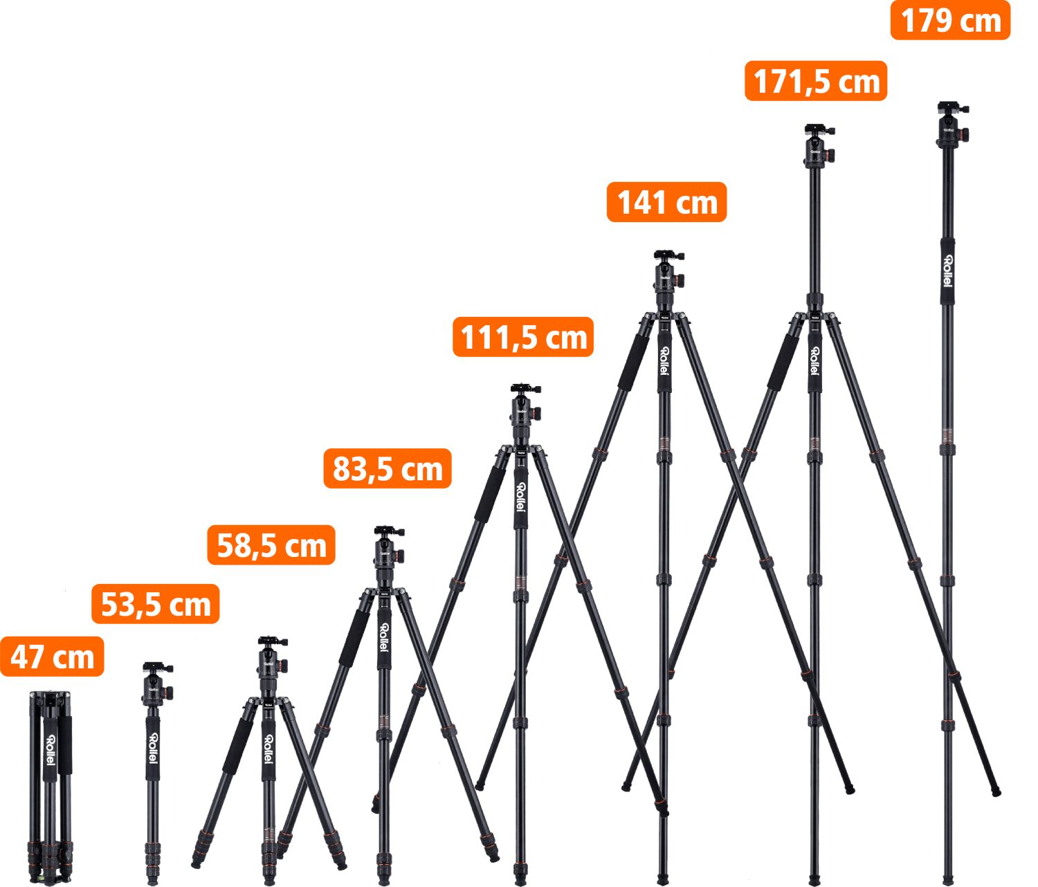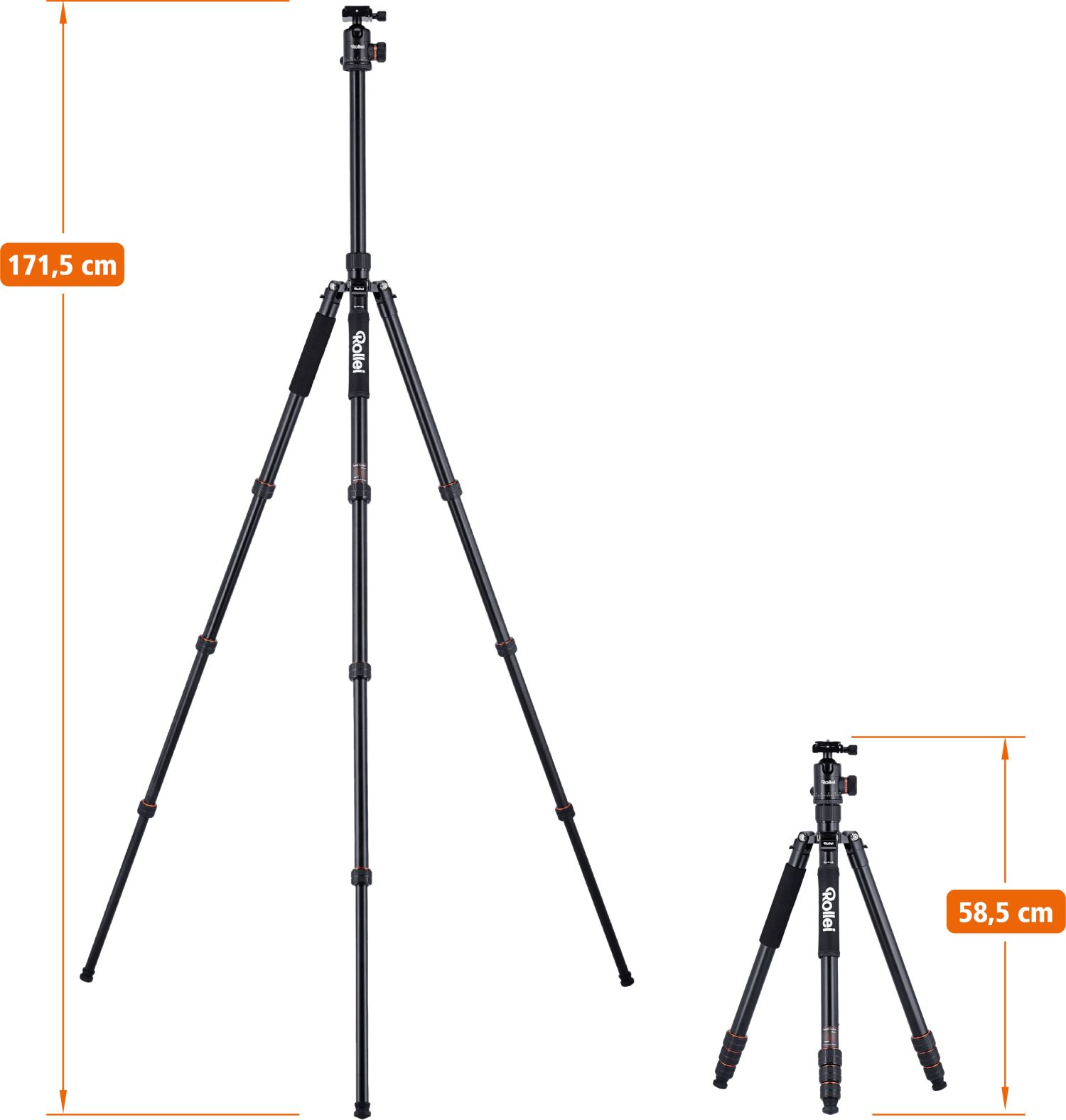 Dank der cleveren Konstruktion lässt sich das Stativ auf ein handliches Maß von 47 cm zusammenklappen. Es passt in fast jeden Fotorucksack und ist somit der perfekte Begleiter für Wanderungen, Städtereisen und spontane Outdoor-Shootings.