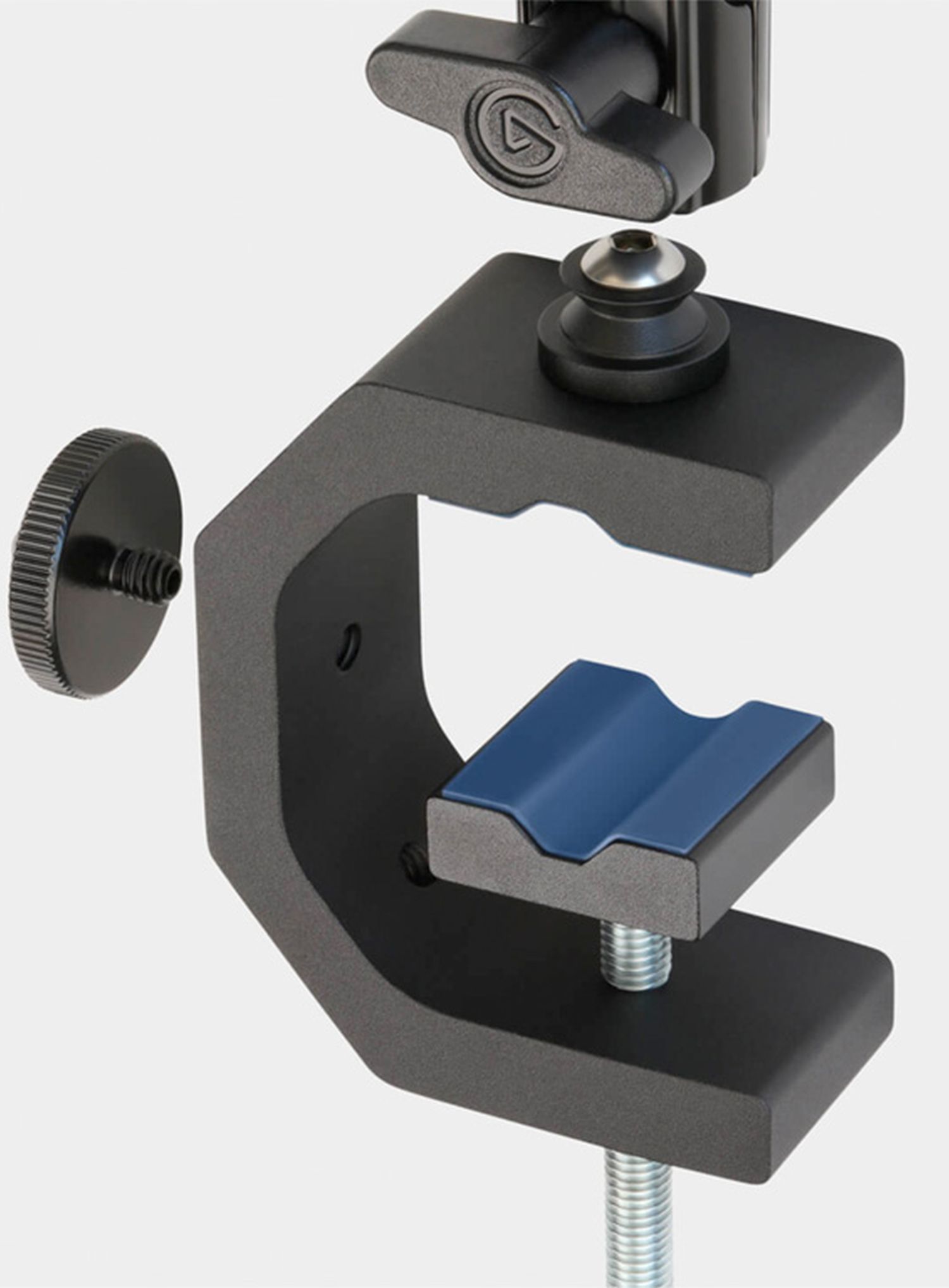 Mit der Heavy Clamp – einer stabilen G-Klemme mit Kugelgelenkkopf und vier ¼”-Gewinden – kannst du dein Equipment fast überall befestigen: am Schreibtisch, Regal, an einer Stange und mehr.