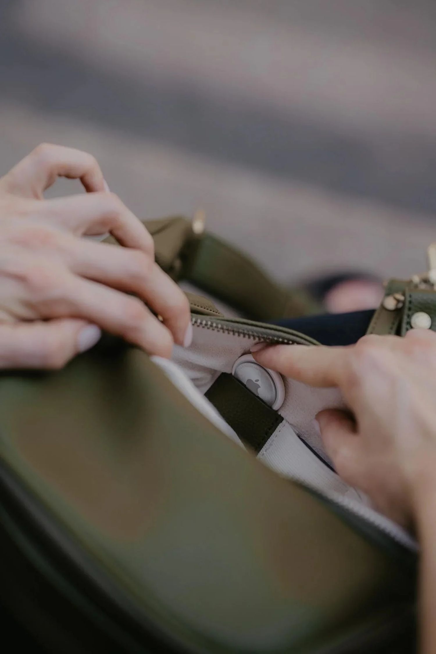• Hinteres Fach mit Gummibändern & AirTag-Halter