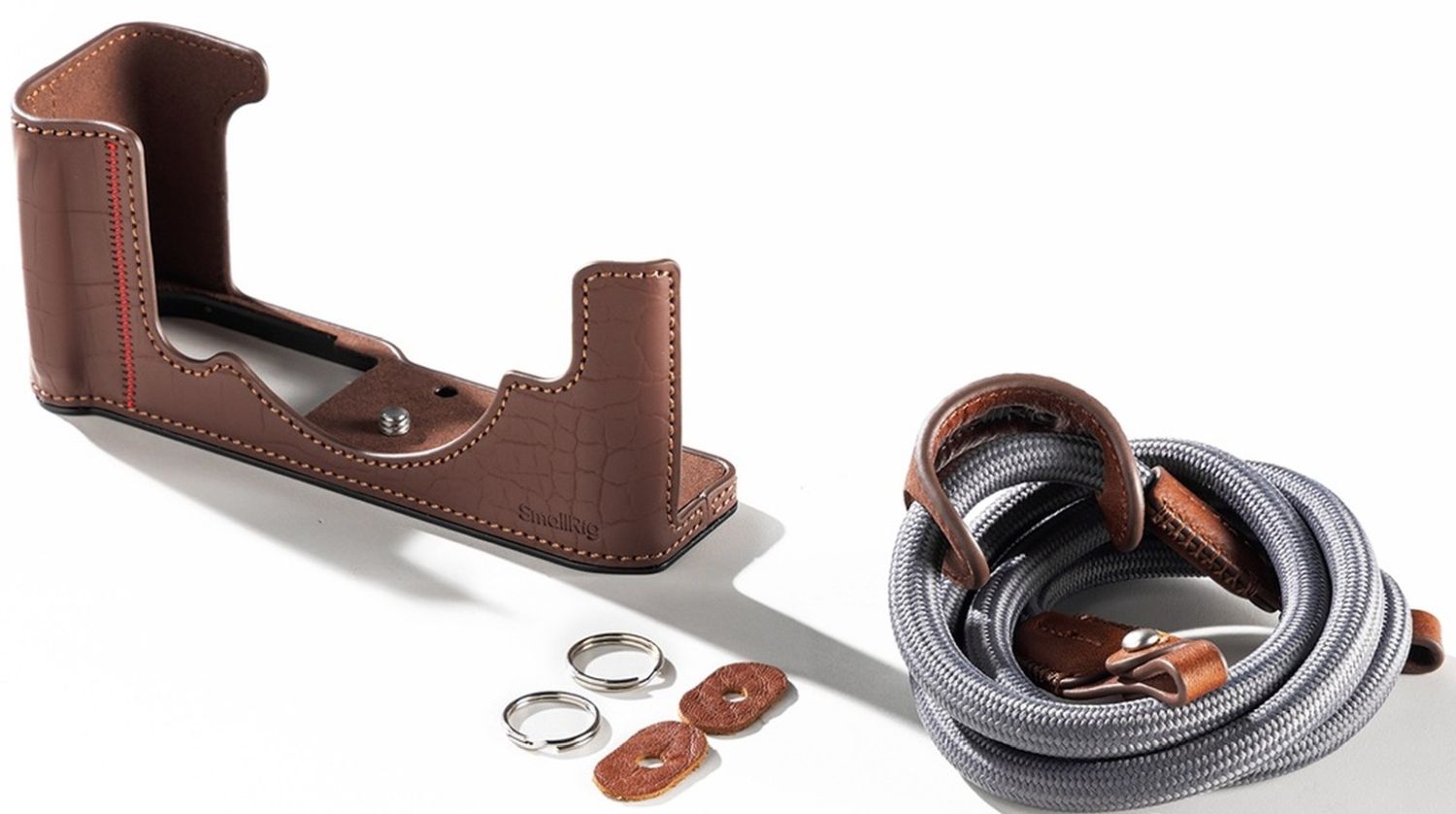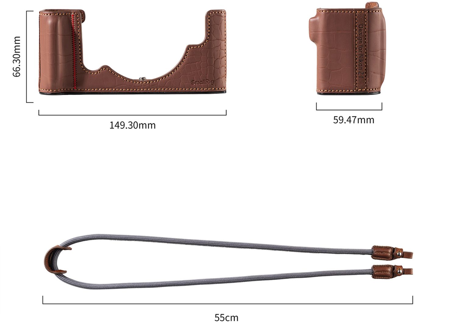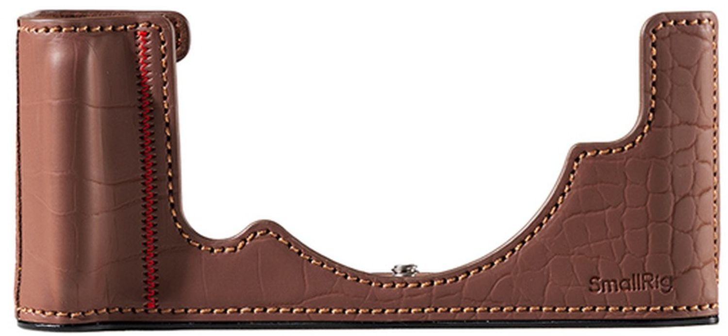 Die SmallRig (Kunst-)Ledertasche 5096 für Nikon Z f (braun) schützt Ihre Kamera und unterstreicht gleichzeitig ihre klassische Ästhetik. Produktbilder zeigen optionales Zubehör und Anwendungsbeispiele.