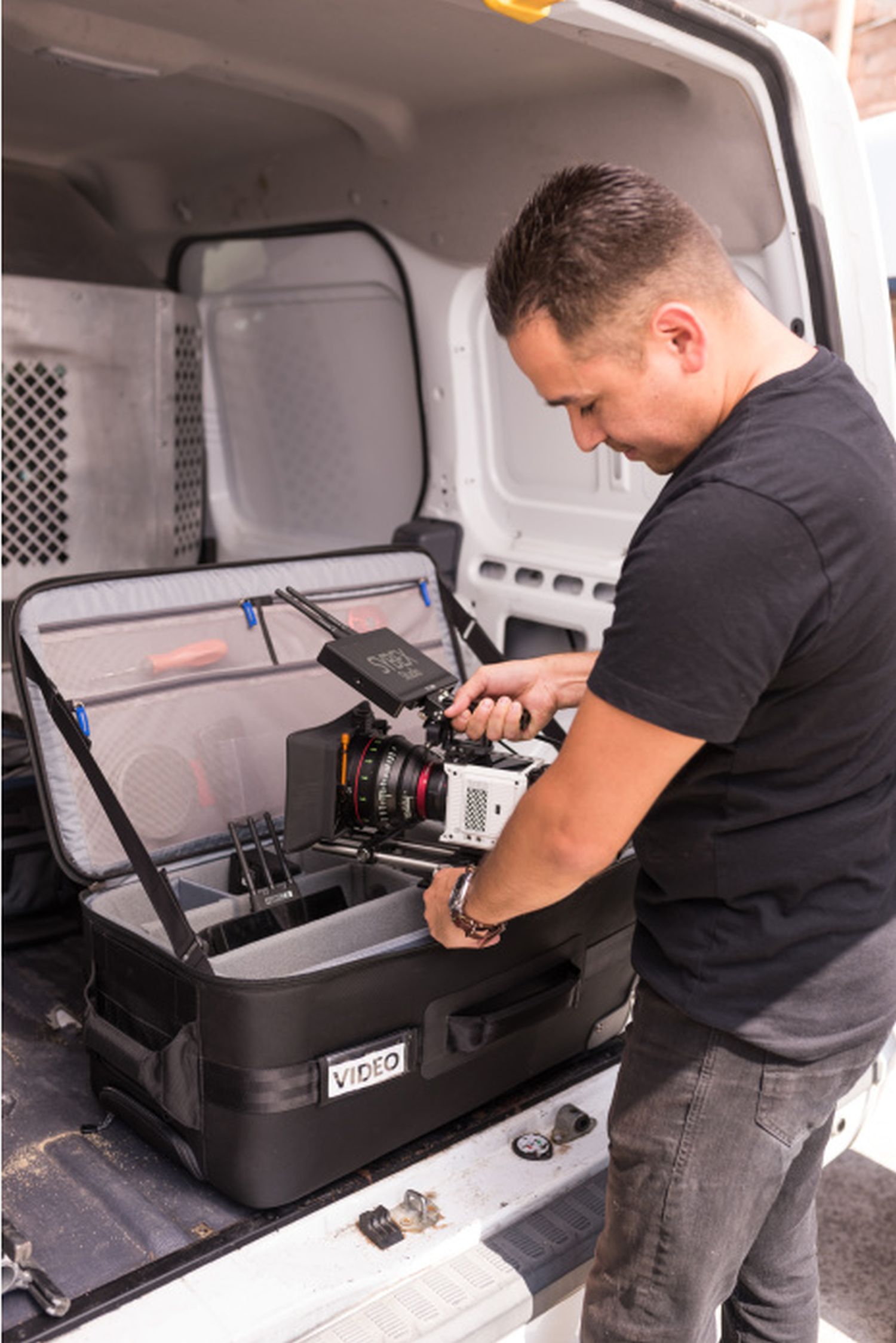 Der Production Manager 40 V2 ist ein handgefertigter Studio-Koffer, der maximale Ausrüstungssicherheit bei geringem Gewicht bietet. Ideal für Foto- und Videoequipment, ermöglicht er den einfachen und geschützten Transport Ihres gesamten Studios vom Studio zum Drehort und zurück. Produktbilder zeigen optionales Zubehör und Anwendungsbeispiele.
