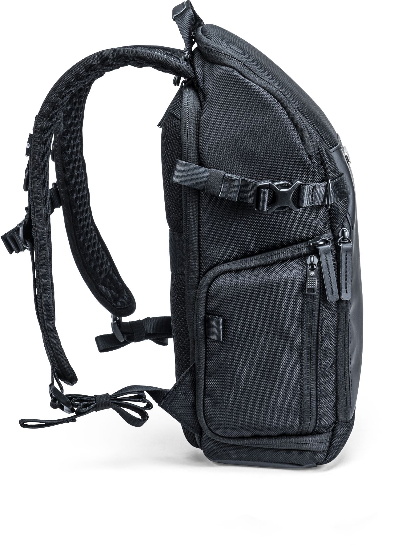 Er eignet sich ideal für den Transport einer spiegellosen oder kleinen DSLR Kamera, 2-3 Linsen, einen Blitz, ein 9,7“ Tablet, und verschiedenes Zubehör, wie zum Beispiel Speicherkarten, Batterien und Ladekabel. Dabei ist der Innenraum aufgrund der herausnehmbaren Klettpartitionen komplett individuell auf die zu verstauende Ausrüstung anpassbar. Auf diesen kann über verschiedene Zugangsoptionen zugegriffen werden. Hauptsächlich findet der Zugriff auf die komplette Ausrüstung über die Rückseite statt, wodurch unterwegs gleichzeitig maximale Sicherheit gewährleistet wird. Alternativ können die inneren Partitionen so platziert werden, dass sie einen schnellen oberen Zugriff auf die Kamera ermöglichen. Auf der rechten und linken Seite des Rucksacks befinden sich darüber hinaus seitliche Schnellzugriffe für die Kamera. Damit eignet sich dieses Modell sowohl für Rechts- als auch für Linkshänder.
