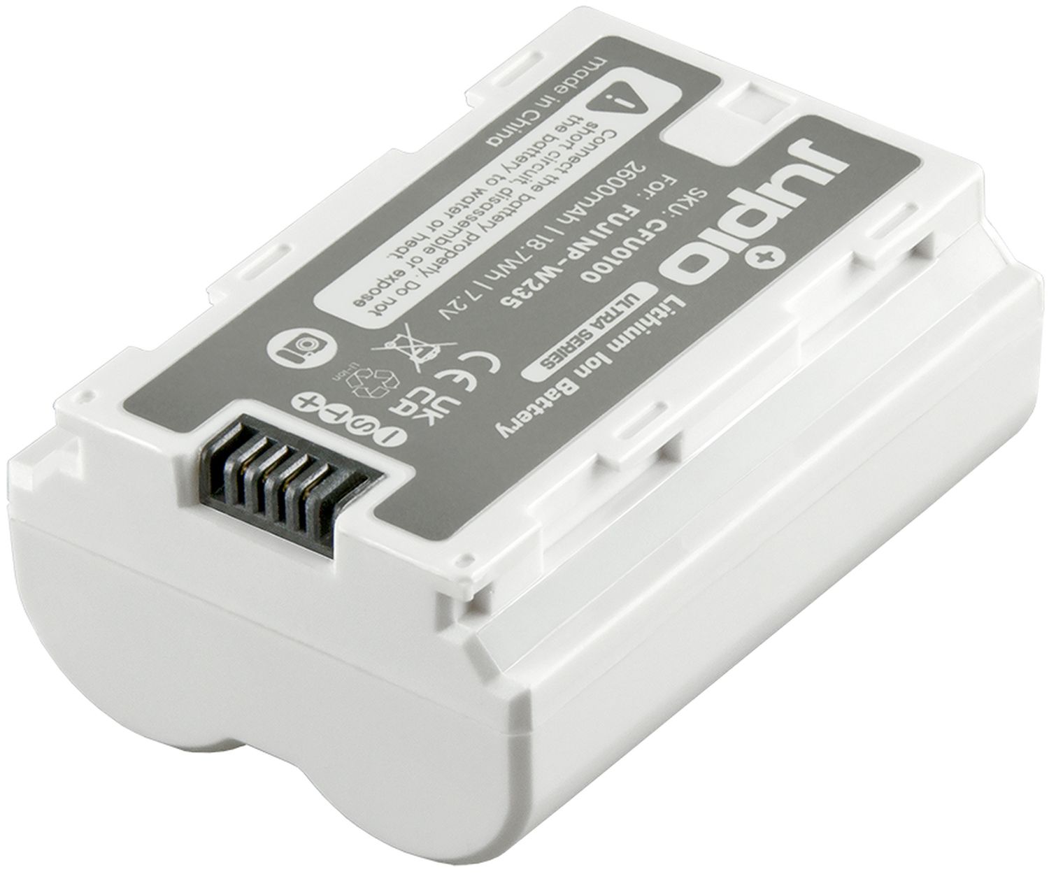 Die Jupio NP-W235 für Fujifilm (CFU0100) bietet dank der besten auf dem Markt erhältlichen A-Klasse-Akkuzellen eine erhöhte Kapazität von 2600 mAh / 18,7 Wh. Im Vergleich zur ursprünglichen Fujifilm NP-W235 bietet die Jupio NP-W235 Ultra 18 % mehr Laufzeit!