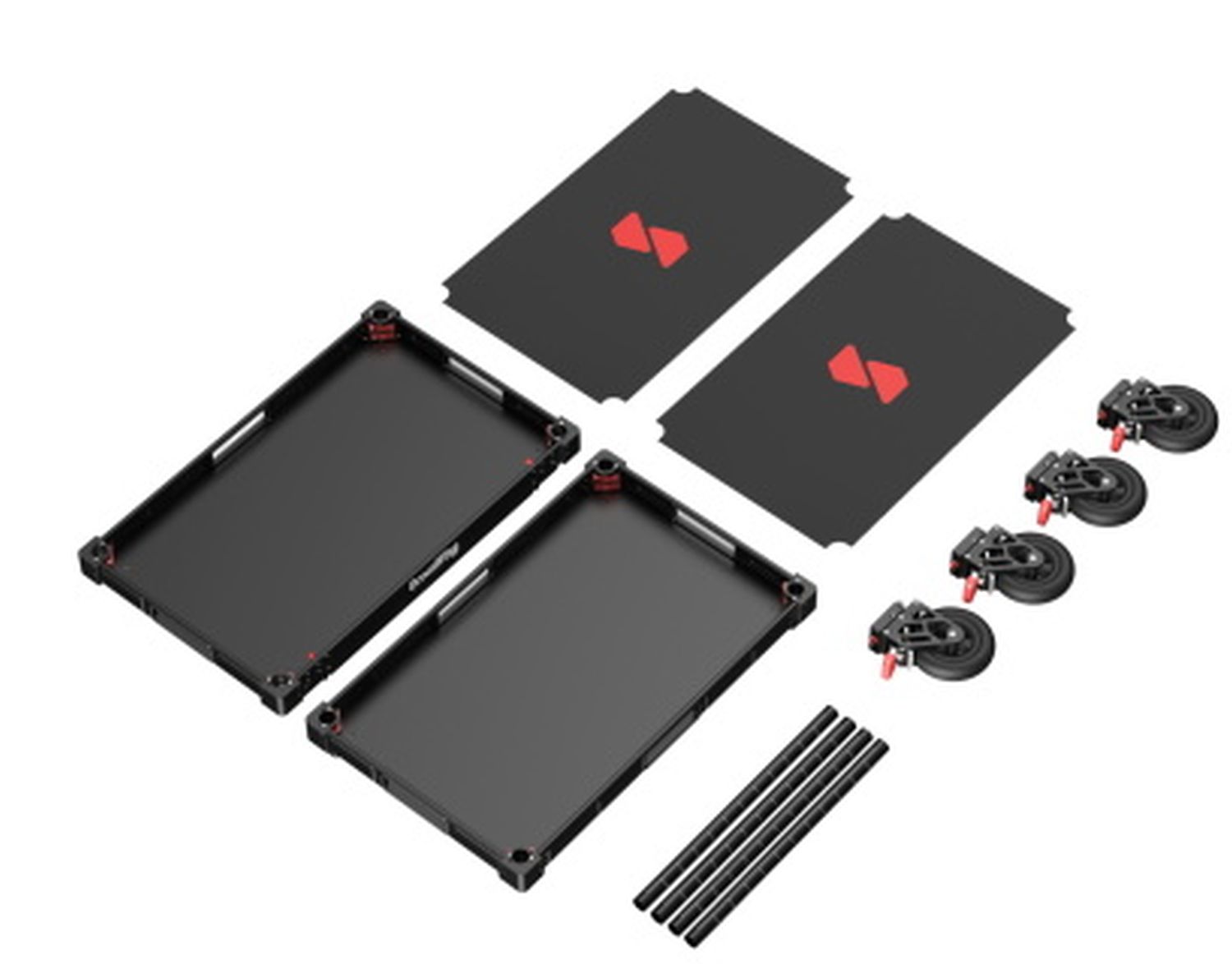 - Leichtgängige Rollen mit Feststellfunktion für sicheren Stand